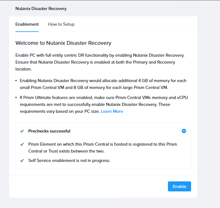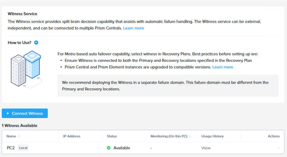 There were also some other limitations: you could not enable Nutanix Disaster Recovery and use the Witness functionality in Prism Central if the PE hosting the PE was not registered to the PC where you wanted to enable Nutanix Disaster Recovery feature.