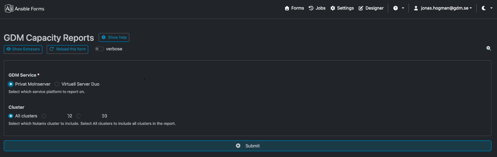 register: hosts_stats_rawWe have the opportunity to filter the different cluster entities with extra vars if we like:
